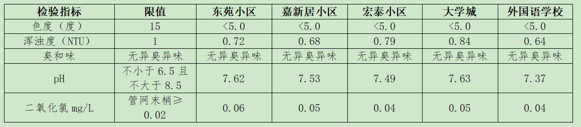 为了保障市区居民饮水安全,根据国家、省、市关于建立水质检测信息发布制度的规定,白山市疾病预防控制中心每月度对市中心城区5个城市水质监测点(市政管网末梢水5个)的5项主要监测指标开展检测。经检验,市中心城区2021年第12月度各水质监测点水质符合国家《生活饮用水卫生标准(GB5749-2006)》,现公示如下:
