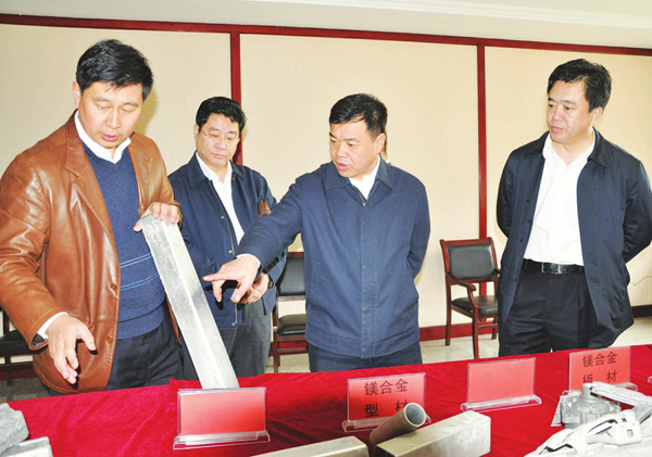 (图为代市长吴德金(右二)在临江东锋镁业公司进行调研 张传新摄)