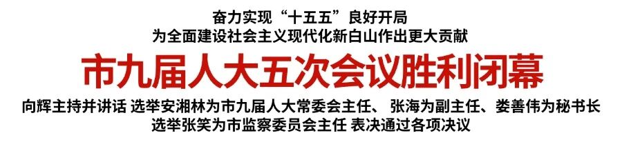 1月23日上午,历时三天的白山市第九届人民代表大会第五次会议,在全体代表的共同努力下,圆满完成各项议程,在市会议中心千人礼堂胜利闭幕。