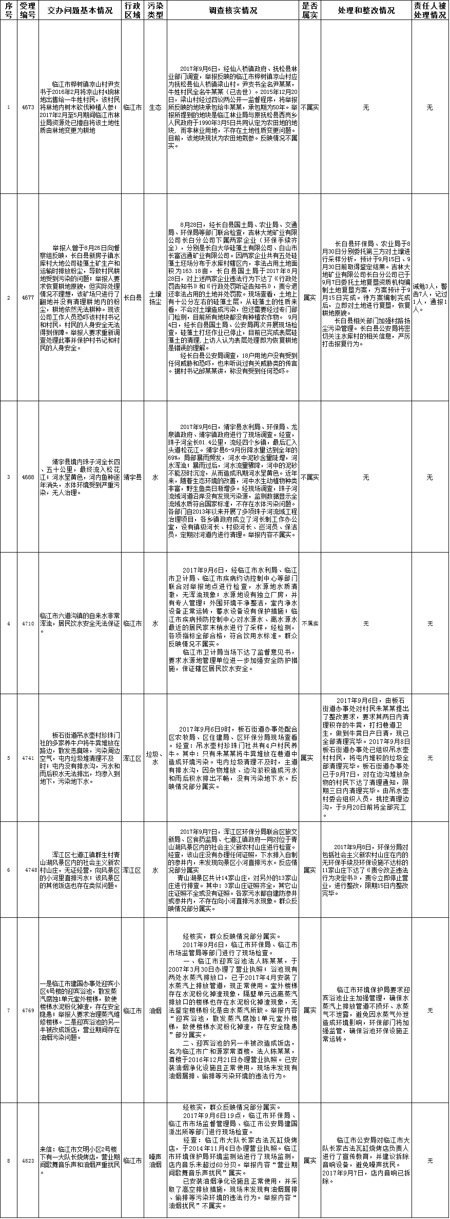 白山市群众信访举报转办和边督边改公开情况一览表(第26批 2017年9月15日)
