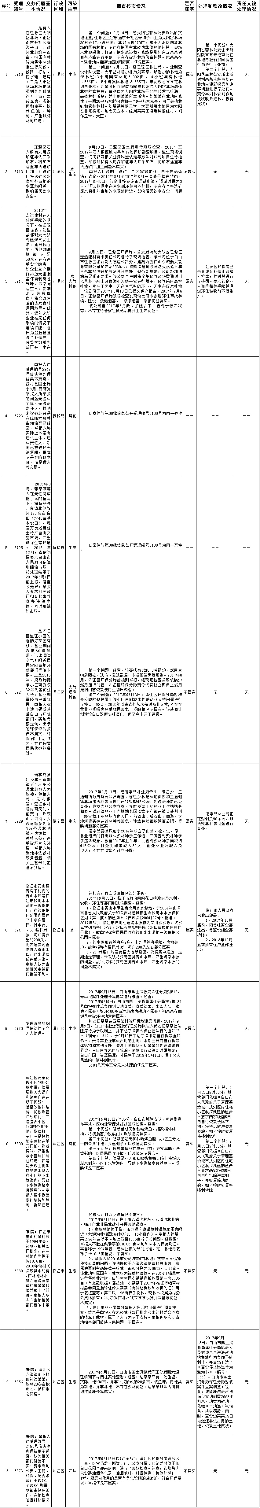 白山市群众信访举报转办和边督边改公开情况一览表(第32批 2017年9月21日)