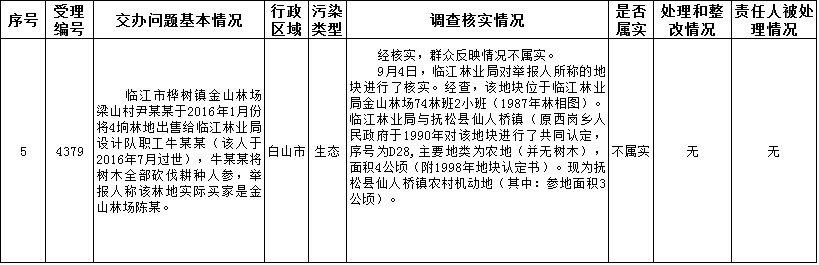 白山市群众信访举报转办和边督边改公开情况一览表(补发第23批 2017年9月23日)