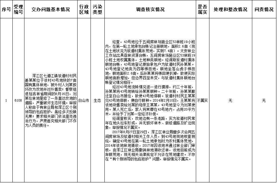 白山市群众信访举报转办和边督边改公开情况一览表(第30批 补办 )