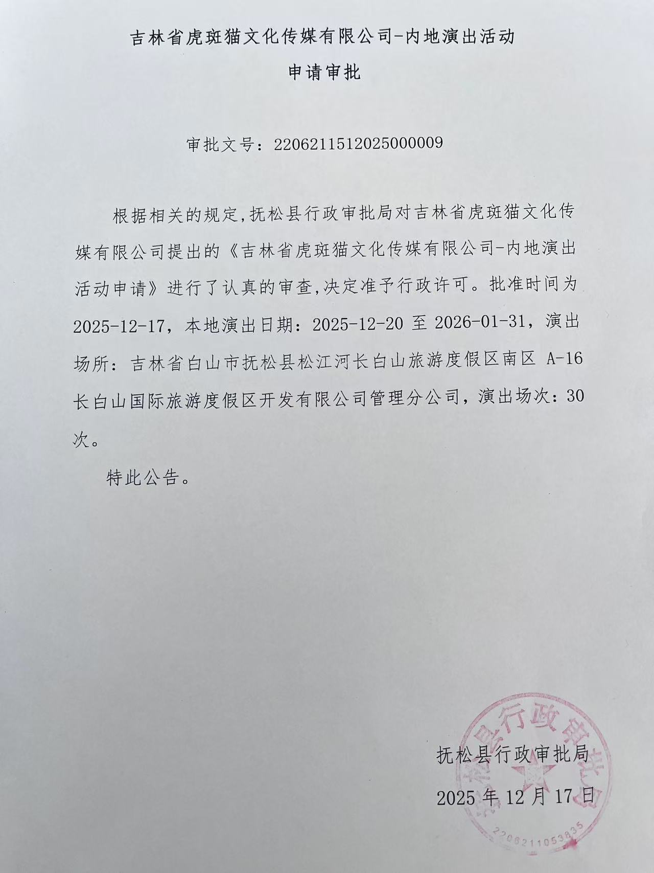 吉林省虎斑猫文化传媒有限公司-内地演出活动申请审批