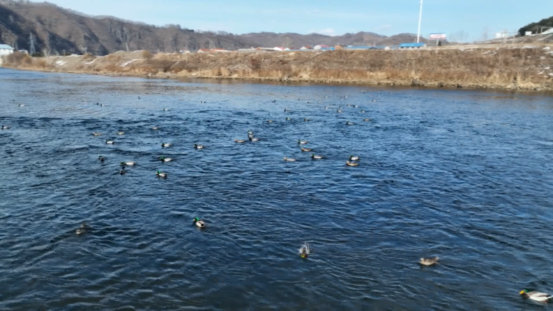 暖阳映照下,松花江水流清澈舒缓。作为对水质与生态极为挑剔的珍稀鸟类,中华秋沙鸭动作轻盈,时而潜入水中捕食,时而振翅而飞;一旁的绿头鸭成群结队、嬉水追逐,为春日的参乡增添了勃勃生机。