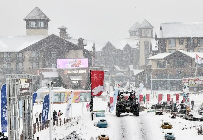 冬日的长白山华美胜地度假区被皑皑白雪覆盖,开阔雪场上引擎声阵阵,游客们驾乘雪地UTV(全地形车)疾驰穿梭,在雪沫飞溅的刺激与风驰电掣的极致体验中,尽享北国冰雪的独特乐趣。