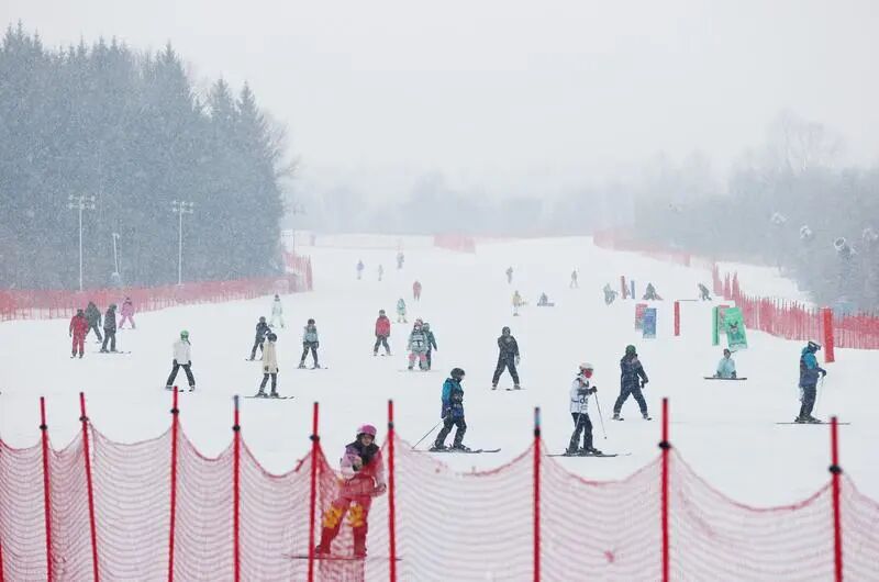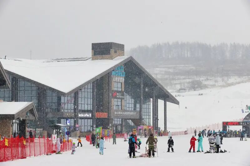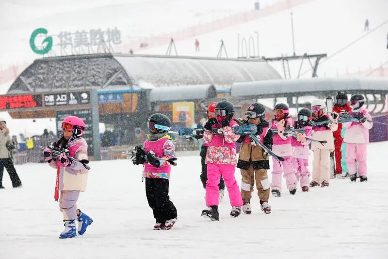冬日的长白山华美胜地度假区,雪道被皑皑白雪覆盖,来自各地的游客身着彩色雪服,在雪场上驰骋,感受滑雪运动带来的速度与激情。