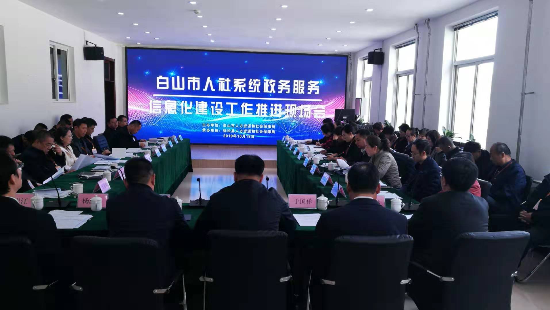 为全面提高白山人社“一体化”政务服务工作水平,充分运用“互联网﹢”、大数据等信息化手段,深入推进人社工作“放管服”改革和“只跑一次”改革,为群众办事提供更透明、更方便、更快捷的服务,10月18日上午,白山市人社局在抚松县召开白山市人社系统政务服务信息化建设工作推进现场会。白山市各县(市、区)人社局局长、分管信息化工作的领导、就业局局长和信息管理中心主任,社会保障卡联名银行的分管行长及相关负责人,市人社局领导班子成员、局机关科室和局属单位相关负责人;市政数局副局长杨忠海同志,抚松县常委、常务副县长于国祥同志也参加了此次会议。省人社厅信息管理中心王瀚令主任、电子政务科孙艳春科长、系统科张鑫水科长,专程来参加会议指导工作。