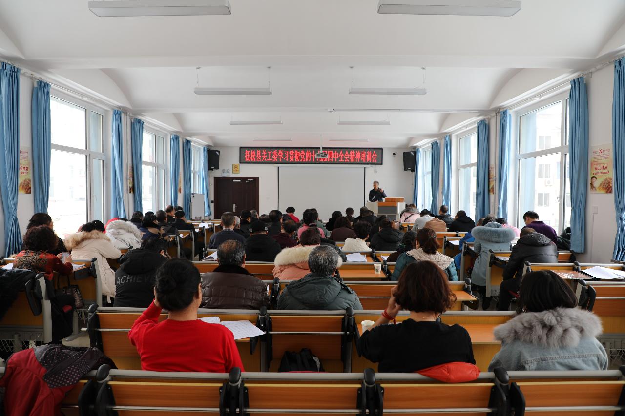 (韩德平)为深入学习领会党的十九届四中全会精神,推动全县关心下一代工作创新发展,12月13日,抚松县关工委在县委党校举办学习贯彻党的十九届四中全会精神培训班。县关工委主任回登利到会看望了参加培训班的各级关工委驻会班子及“五老”;县关工委副主任付玉生作了《深入学习贯彻党的十九届四中全会精神,努力开创我县关心下一代工作新局面》专题辅导;县关工委副主任王丽军主持了培训班。