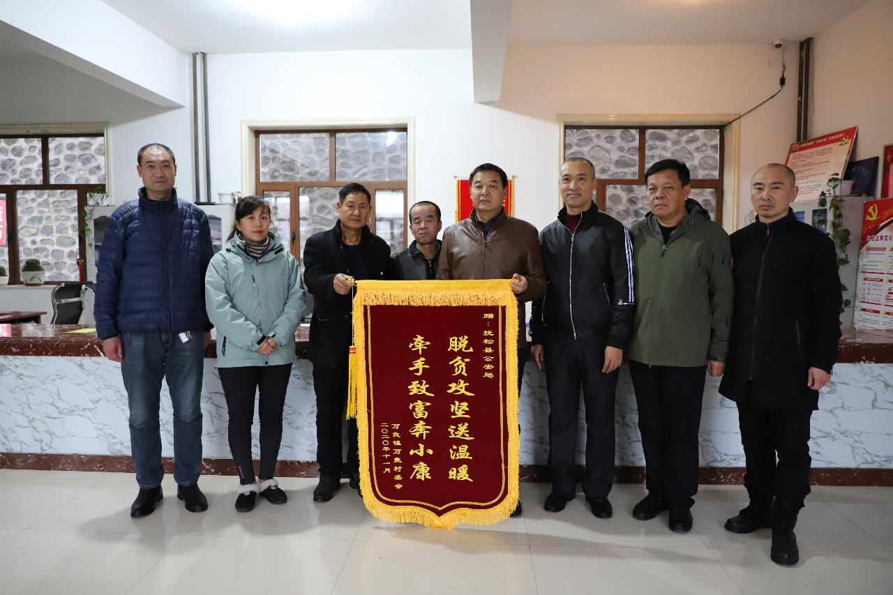 为了满足马德江的心愿,万良村委会代马德江做了一面锦旗,在2020年12月,包保部门来万良村进行帮扶的时候,马德江激动地将锦旗送给前来帮扶的责任民警。