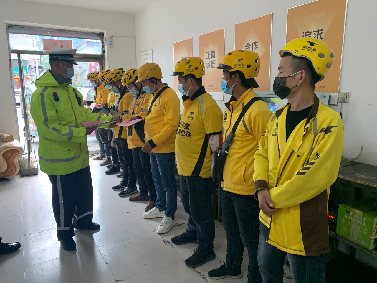 为提高外卖从业人员的交通安全意识,减少交通死亡事故的发生,确保辖区道路安全、有序,抚松交警持续开展“一盔一带”安全守护行动,近日,民警走进美团外卖,对骑手们进行了“一盔一带”交通安全知识宣讲。