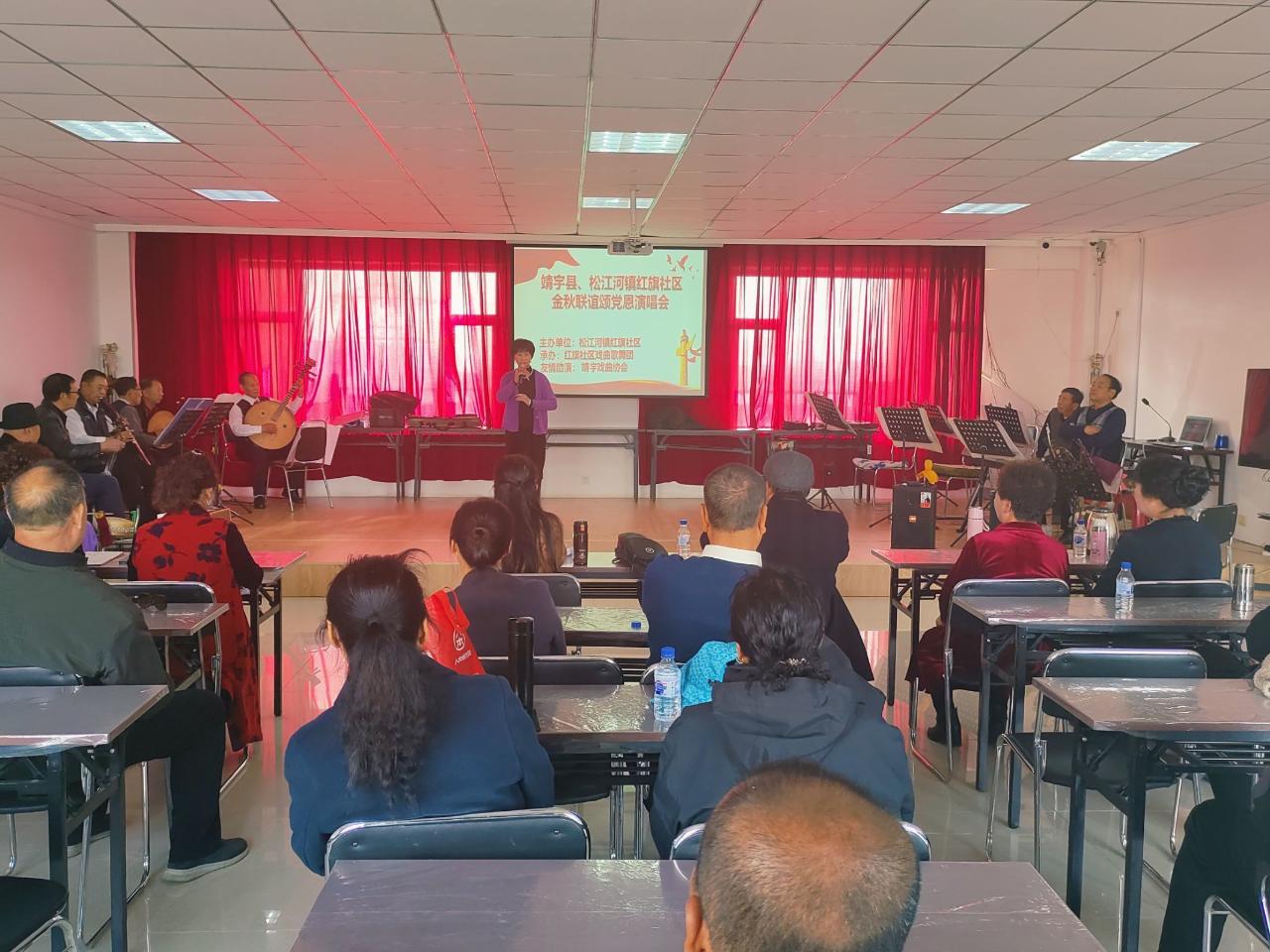 金秋送爽,为丰富辖区群众精神文化生活,弘扬和传承传统戏曲文化,近日,松江河镇红旗社区联合松江河镇戏曲协会、靖宇县戏曲协会,共同开展“金秋联谊颂党恩”戏曲文艺汇演活动。