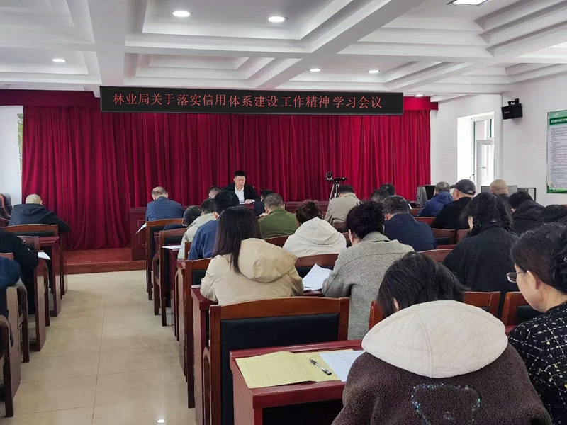 5月22日,为深入贯彻落实社会信用体系建设工作精神,进一步加强诚信建设,提升林业系统信用体系建设工作水平,林业局开展了信用体系建设工作精神集中学习,局机关全体人员参加了会议。