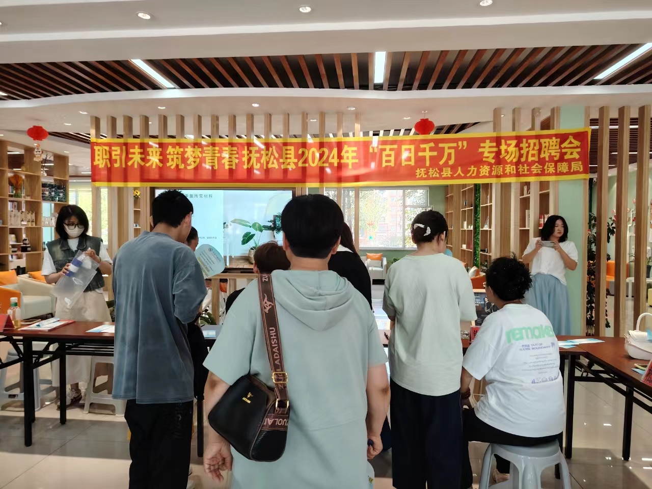 为深入贯彻党中央、国务院关于促进高校毕业生等青年就业工作决策部署,落实全国高校毕业生等青年就业创业工作视频会议精神,强化就业服务,畅通求职招聘渠道,提高对接匹配效率,抚松县人社局于6月21日在松江河站前社区开展“职引未来·筑梦青春”——抚松县2024年“百日千万”专场招聘会。