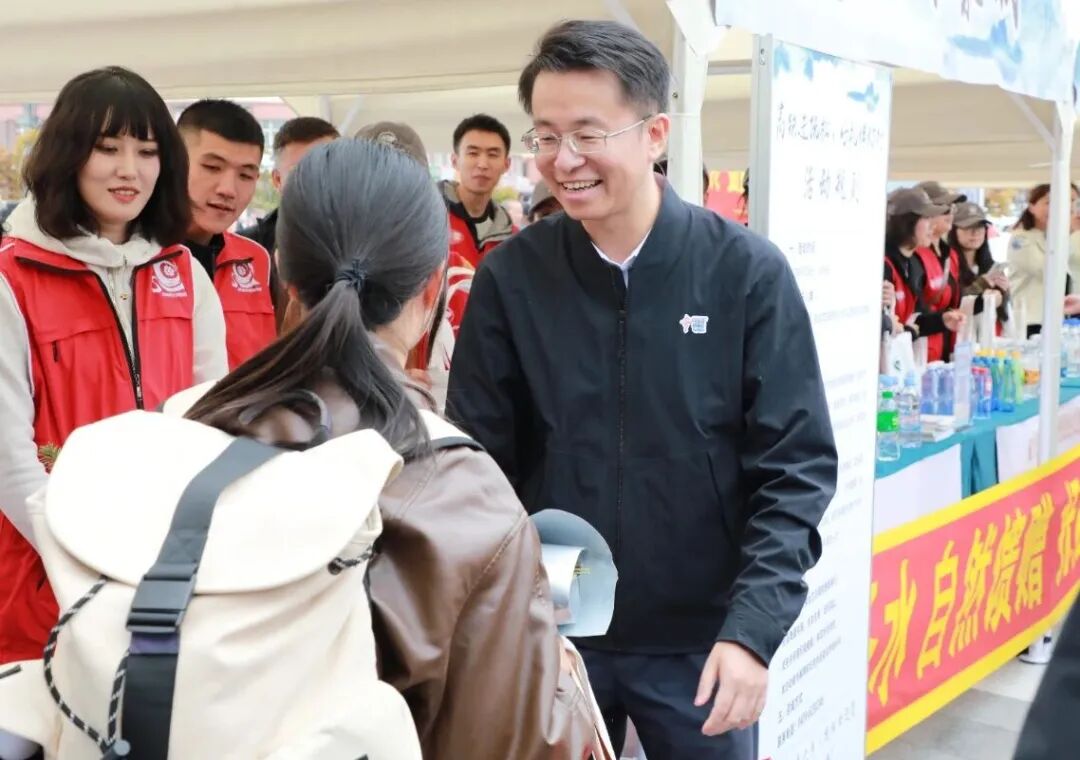 上午10点59分,首批旅客乘着G3528次列车驶入长白山西站。为迎接首批旅客出站,刘怀辉在“参乡纪念亭”体验区等候,见到旅客热情招手,真切欢迎他们乘坐高铁来到抚松,并邀请他们共同制作长白山印章册,为首位游客赠送“参乡礼包”和青(轻)松花束,与游客共同参加红歌快闪活动,将抚松的热情好客与暖心温度传递给广大游客。