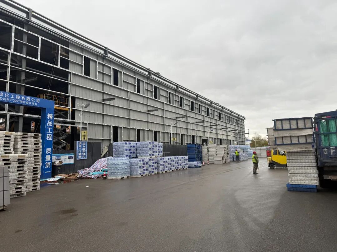 “项目分两期建设,目前一期5.5车间的装修改造已经完成,引进的两条西德乐高速生产线和注塑设备已完成改造升级,正处于调试阶段,即将投产。”项目负责人、副总经理薛景超介绍。其中一条生产线每小时可生产7.2万瓶600毫升装矿泉水,展现了高效的现代化生产能力。二期6车间已开工建设,主体施工正在进行墙体砌砖、墙面和屋面安装、室内地面已基本完成。项目全部建成后,不仅将极大提升“泉阳泉”品牌的市场供给能力,更将直接带动当地就业,为区域经济注入稳定税源,成为“绿水青山”转化为“金山银山”的生动实践。