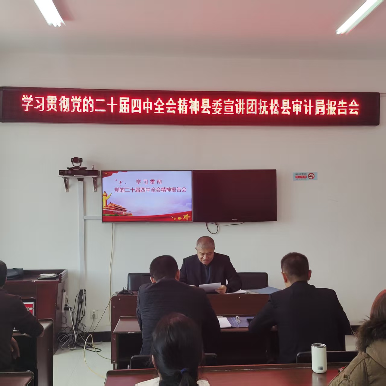 为深入学习贯彻党的二十届四中全会精神,切实把思想和行动统一到党中央决策部署上来,近日,抚松县审计局召开学习贯彻党的二十届四中全会精神报告会,抚松县委宣讲团成员、县审计局局长鲁胜利同志作宣讲报告。