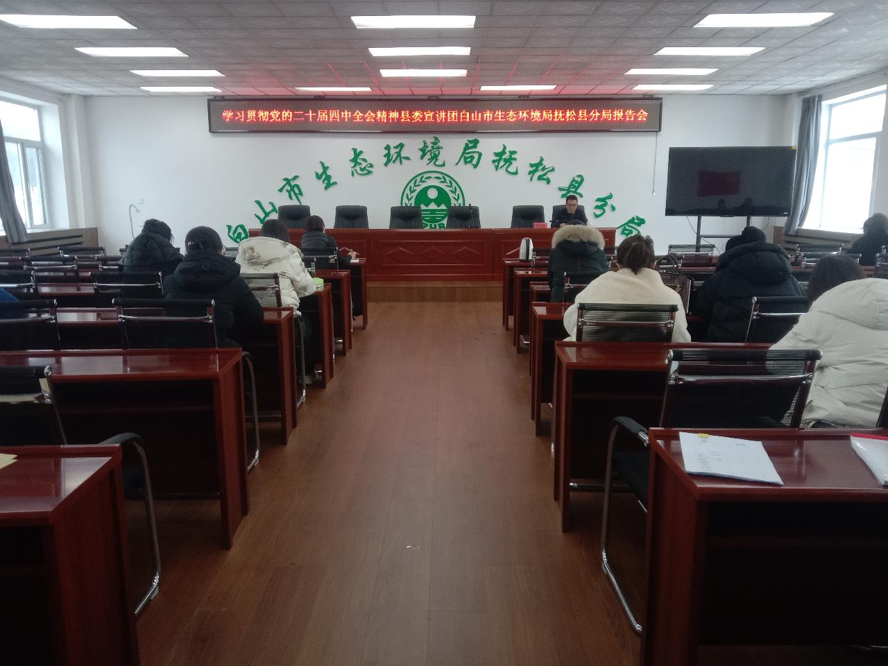 为深入学习贯彻党的二十届四中全会精神,近日,县委宣讲团到白山市生态环境局抚松县分局宣讲党的二十届四中全会精神,全体干部职工参加学习。