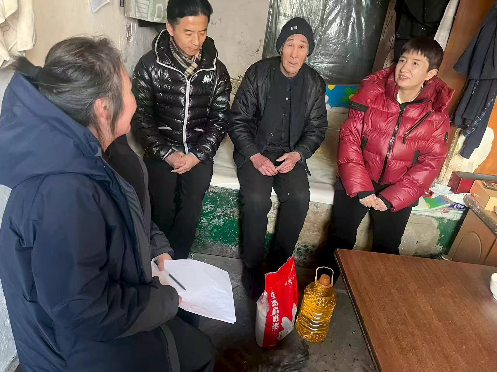 走访过程中,党员干部们带着精心准备的慰问物资,走进困难群众家中,与他们促膝长谈、拉家常问冷暖,细致了解家庭生活状况、身体情况及实际需求,认真倾听群众心声。拿到慰问物资的群众感动不已,眼中满是对党组织关怀的感激之情。一份份物资、一句句问候,为群众送去了物质上的帮扶和精神上的慰藉与鼓舞,让这个寒冬充满了浓浓的暖意。