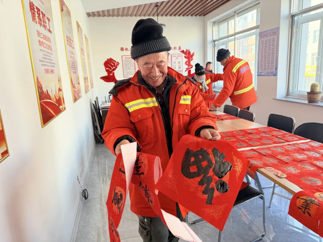 一笔一画寄深情,一联一福暖人心。为营造新春佳节祥和喜庆的节日氛围,丰富基层职工群众精神文化生活,1月30日,抚松县总工会、县文联,走进抚松镇东北社区开展新春送福送春联活动,为广大职工群众送上新春美好祝福。 活动现场,书法老师们凝神挥毫、墨韵飘香,楷隶行草各展风姿,落笔间尽显书法魅力。一副副春联寓意美好、字字凝情,一张张福字红红火火、满含期许,笔墨间勾勒出新春的喜庆,承载着大家对新年的美好憧憬。领取春联的职工群众络绎不绝,大家驻足观赏、品评佳句,声声赞叹萦绕现场,浓浓的年味与暖心的氛围在指尖与墨香间悄然传递,让职工群众在墨香四溢中提前感受到了新春的温馨与美好。 此次活动不仅为职工群众送上了满满的新春祝福,更以文化为纽带,拉近了工会与职工群众的距离。抚松县将继续聚焦职工群众的需求,持续开展更多贴近职工、贴近生活的文化惠民活动,不断丰富职工群众的精神文化生活。
