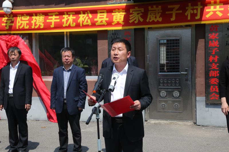 王福源在仪式上讲话,指出,近年来,为全面贯彻落实党的十九大提出的乡村振兴战略,抚松县充分依托丰富的资源优势和良好的地理区位,不断提高创新驱动能力,并以“二五十百千”作为落实乡村振兴战略的有力抓手和加快推进农业农村现代化。黄家崴子村生态资源丰富、红色旅游底蕴深厚,已初步形成集生态宜居、农事观光、红色旅游为一体的现代农业产业体系,在我县深入实施乡村振兴战略、加快推进“二五十百千”工程中走在了前列。此次揭牌仪式开辟了“校村合作”助力乡村振兴的新领域,希望通过高校“智能库”在乡村振兴中的巨大引擎作用,推动双方实现更深层次上的资源共享、优势互补,进一步将产学研融为一体,取得互利共赢的丰硕成果。