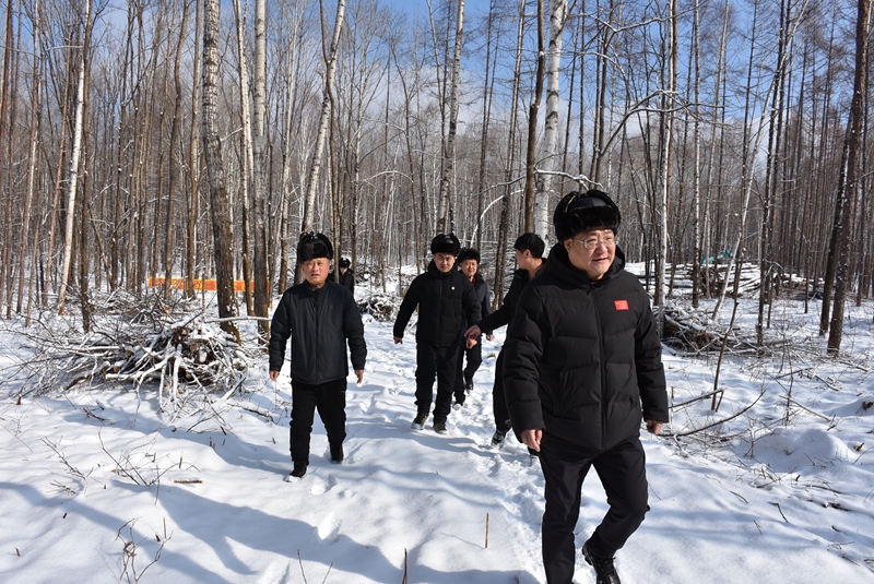 在采伐作业、集材运输一线,孟详栋详细查看伐区作业规范、安全防护、机械设备运维、路况防滑及现场防火措施落实情况,与林场负责人、作业人员深入交流,细致了解生产进度、安全管理、隐患排查整治、极端天气应对及后勤保障等工作。他强调,采伐工作事关林区经济发展与生态安全,必须牢牢守住安全底线、生态红线、规范主线,严格执行采伐限额与作业规程,强化岗前培训、现场监管和闭环管理,严防违章作业、疲劳作业和道路运输风险,确保生产安全有序、高效推进。