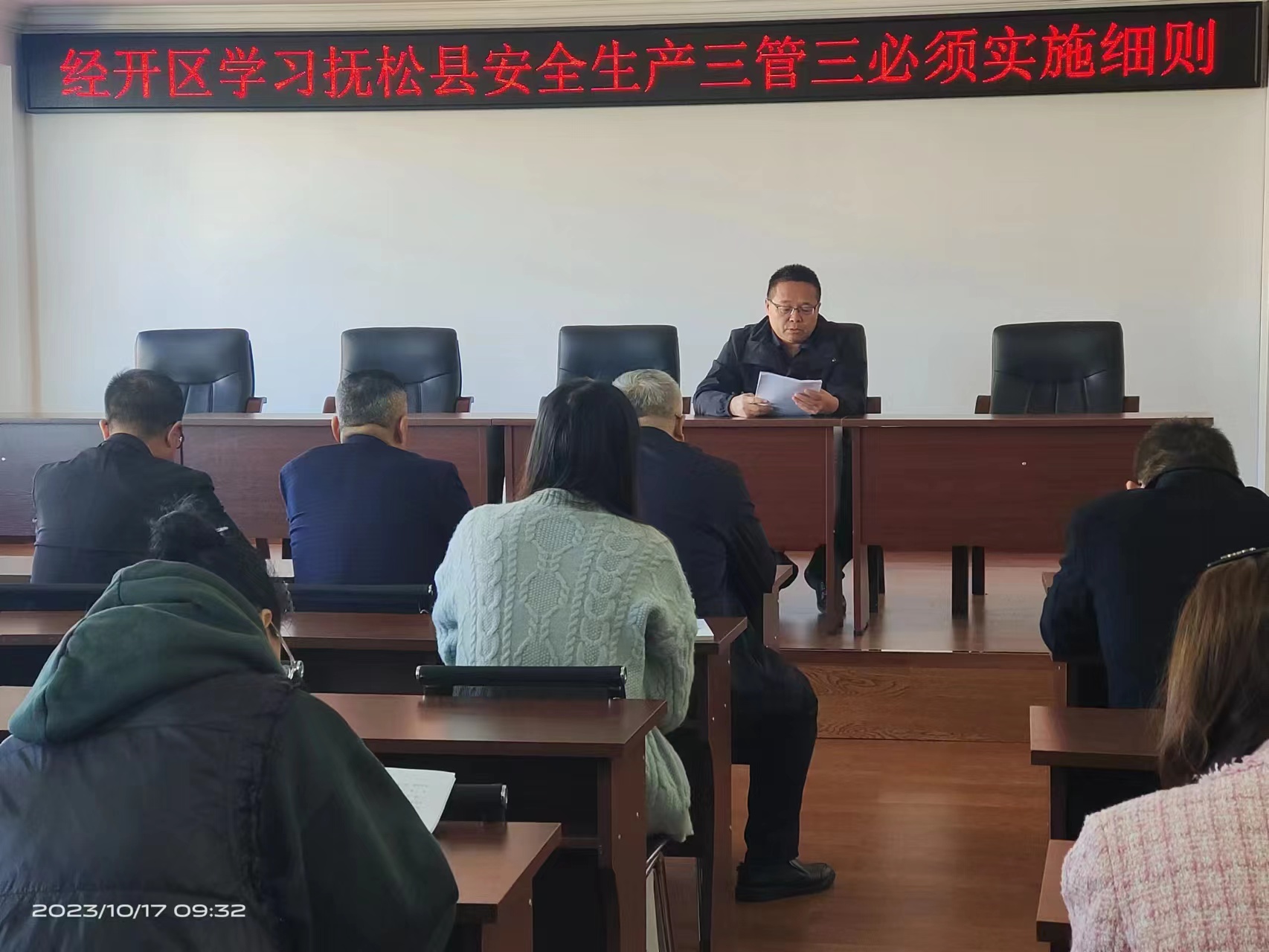10月17日,吉林抚松经济开发区召开《抚松县安全生产三管三必须实施细则》专项学习会议,经开区全体机关干部参加了会议。
