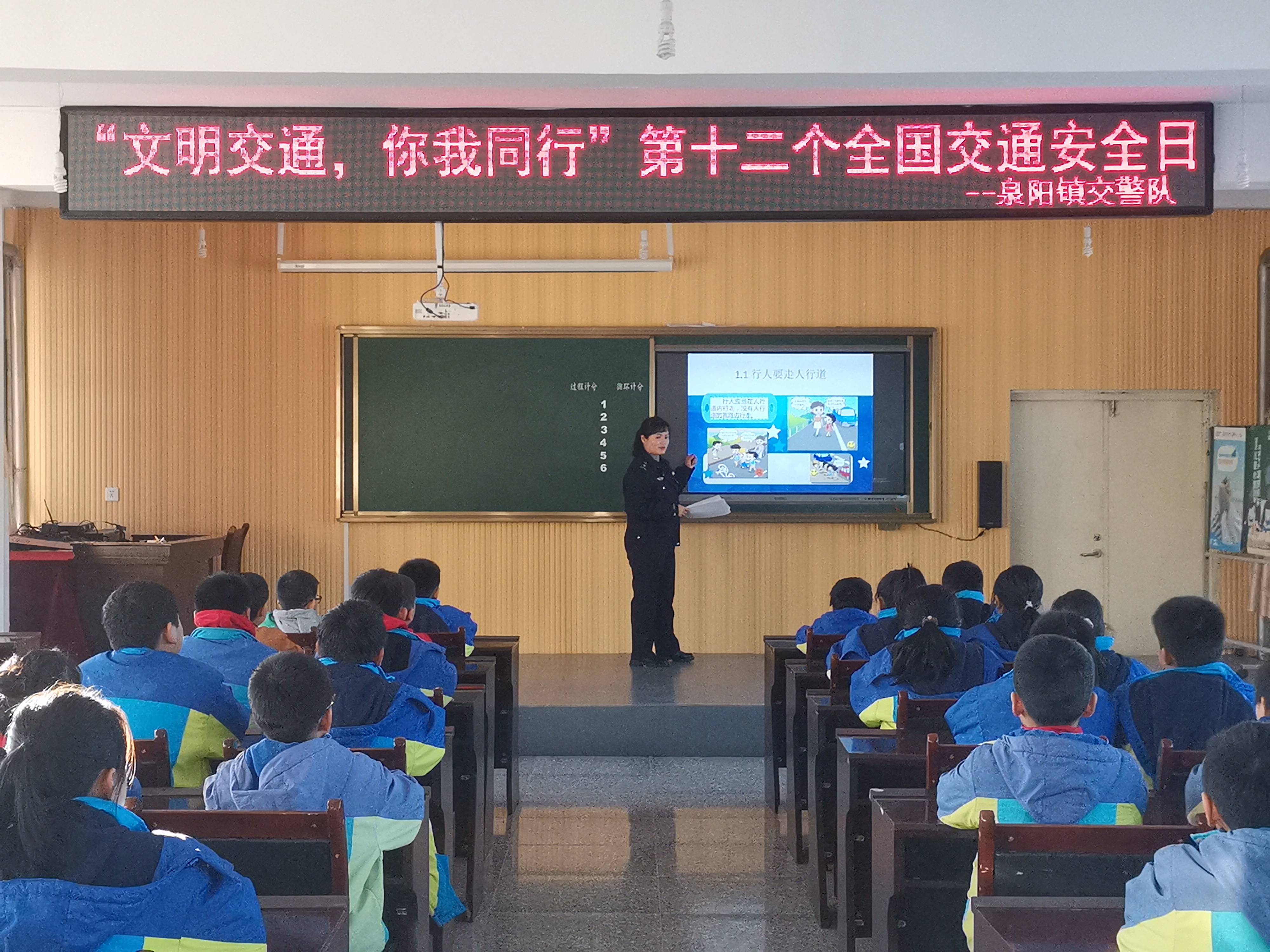 为了提高学生的交通安全意识和文明出行的自觉性,全力预防和遏制道路交通事故的发生,营造良好的校园出行环境,12月1日,抚松县泉阳镇中心小学联合泉阳镇交警中队,开展了“文明交通 你我同行”交通安全日宣传活动。
