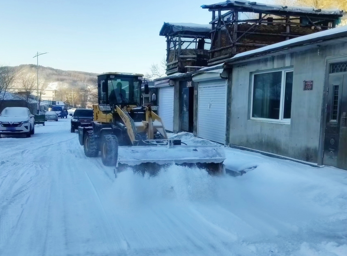 抚松镇党员干部、“三长”、居民和志愿者积极行动、通力合作,顶着凛冽的寒风,手持铁锹、扫帚等清雪工具,有序地清除主要道路、背街小巷的积雪暗冰,同时出动铲车清除道路积雪。尽管大家累得气喘吁吁,但手中的清雪工具却不停地挥舞着,全力为居民铲出了一条条“安全路”。