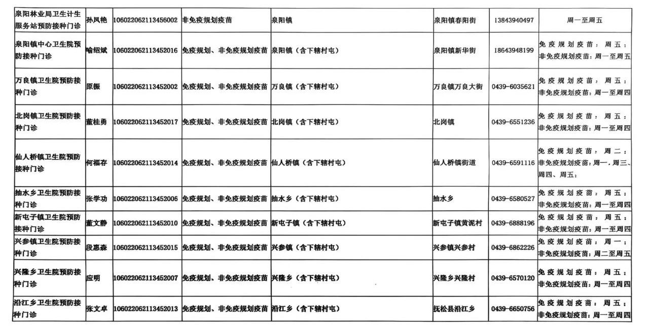 附件:抚松县预防接种门诊(点)信息公布汇总表