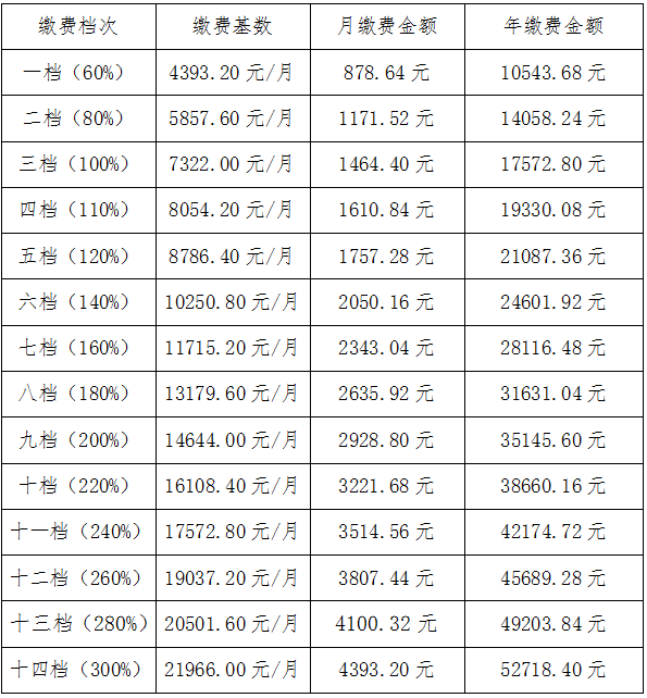 为深入贯彻依法依规、有序高效的社会保险费征缴工作精神,抚松县社会保险事业管理局积极响应国家号召,按照“统一政策规定、统一经办操作、统一宣传口径”的原则,抚松县社会保险事业管理局2025年企业职工基本养老保险、自由职业者、灵活就业人员年缴费标准已执行新标准,共分为十四个档次,个体参保人员可在全省全口径城镇单位就业人员平均工资的60%至300%之间选择适当的缴费基数,具体的缴费标准如下:
