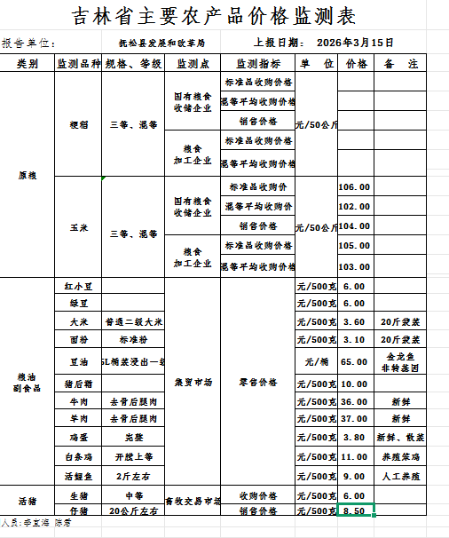 吉林省主要农产品价格监测表