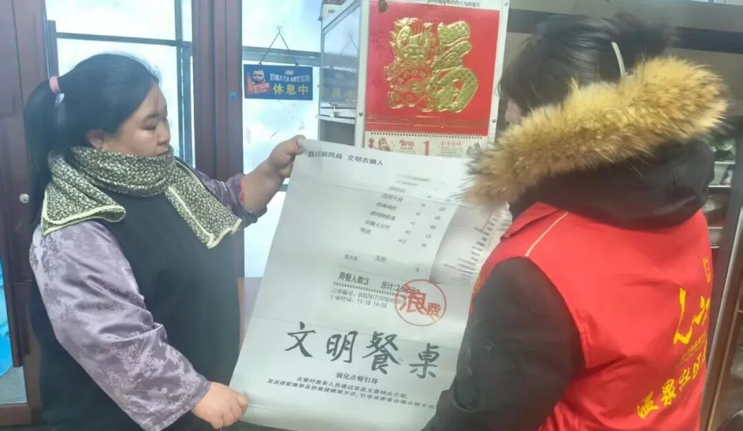 同时,工作人员与经营者深入沟通,鼓励将文明餐桌要求落到日常经营管理中,建议商家推出小份菜、服务员点餐时多强化引导、免费提供打包服务,为居民和游客打造舒心的文明就餐环境。各经营者均积极响应,表示将自觉践行文明餐桌理念,主动做好节约宣传,带动顾客养成按需点餐、杜绝浪费的良好用餐习惯。